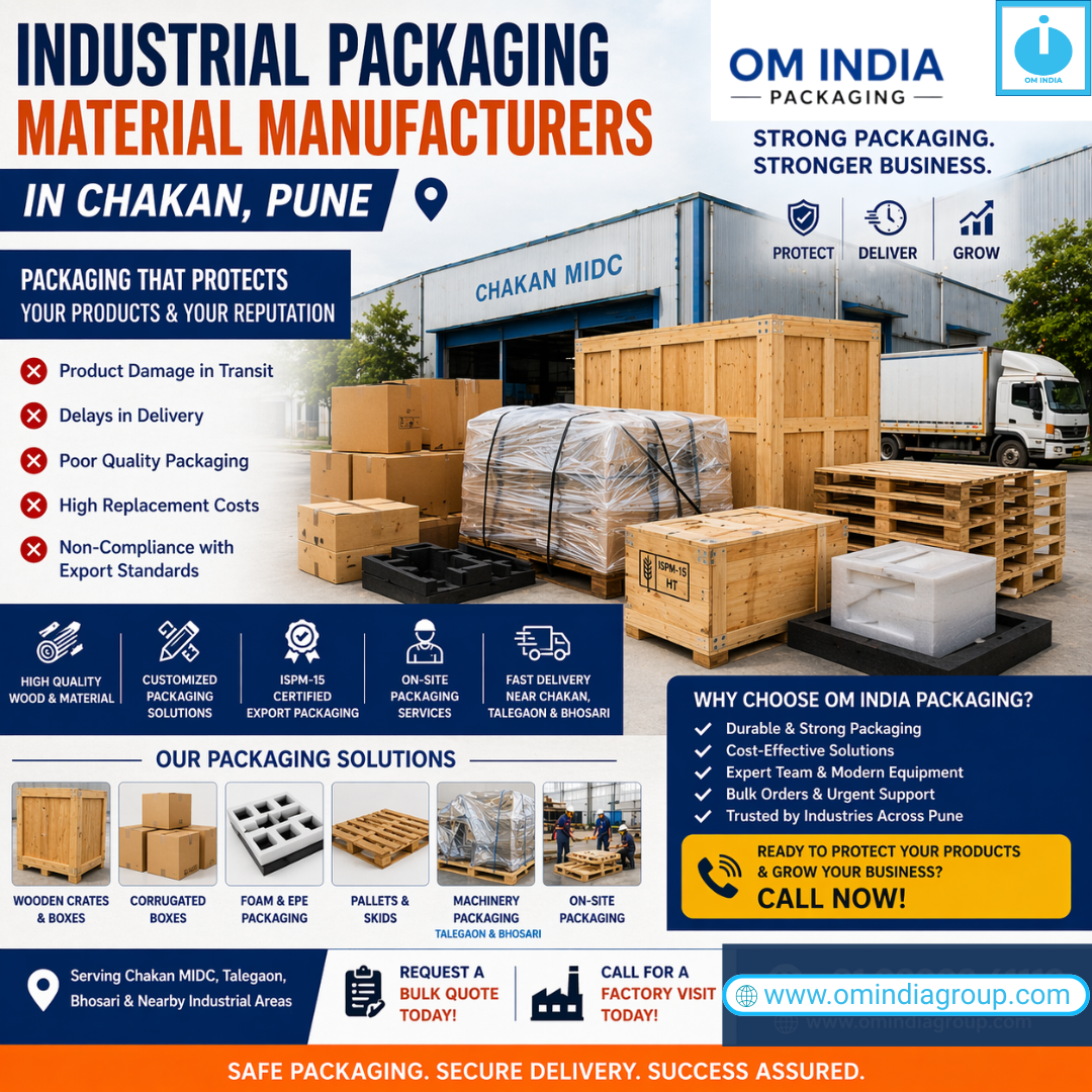If you’re searching for reliable industrial packaging material manufacturers in Chakan, Om India Packaging offers the expertise, infrastructure, and solutions your business needs to grow.