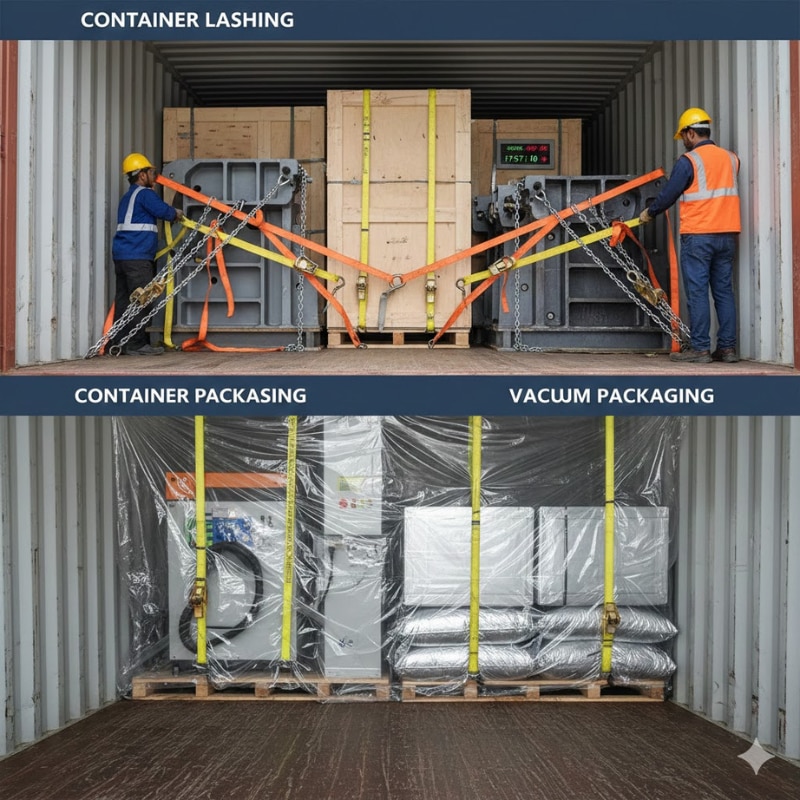Container Lashing & Vacuum Packaging Service Provider in Pune, Pimpri Chinchwad & Mumbai OM INDIA is a trusted provider of Container Lashing & Vacuum Packaging Services, offering complete cargo securing and protection solutions for domestic and export shipments. Our Container Lashing & Vacuum Packaging services ensure cargo stability, moisture protection, and damage-free transportation during road, sea, and multimodal logistics. We provide Container Lashing & Vacuum Packaging Services across Pune, Pimpri Chinchwad, Mumbai, Chakan, Talegaon, Tathawade, Moshi, Talwade, Bhosari, and Rajgurunagar, covering major MIDC areas, ports, and export-oriented industrial hubs. What Is Container Lashing & Vacuum Packaging? Container Lashing & Vacuum Packaging involves securing cargo inside containers and sealing products in vacuum packaging to protect them from movement, moisture, corrosion, and external damage. These services help in: ✔ Preventing cargo shifting during transit ✔ Protection from moisture, humidity & corrosion ✔ Safe handling of heavy and sensitive equipment ✔ Reduced risk of transit and export damage They are ideal for industrial, heavy cargo, and export shipments. Our Container Lashing & Vacuum Packaging Services ✔ Container Lashing using belts, wires & wooden blocks ✔ Heavy Cargo Lashing & Securing ✔ Vacuum Packaging for Machinery & Metal Components ✔ Combined Lashing with Seaworthy Packaging ✔ Export-Ready Cargo Securing Solutions Key Features of Container Lashing & Vacuum Packaging ✔ Professional cargo securing as per load requirement ✔ Strong and reliable lashing systems ✔ Moisture-proof vacuum sealed protection ✔ Suitable for heavy, oversized & sensitive cargo ✔ Ideal for sea freight and long-distance transport ✔ Cost-effective cargo protection solution Container Lashing & Vacuum Packaging for Export Use Our Container Lashing & Vacuum Packaging Services are designed to meet international export requirements, ensuring: ✔ Safe overseas transportation ✔ Reduced risk of cargo damage ✔ Improved container utilization and stability Suitable for sea freight, export containers, and multimodal shipments. Applications of Container Lashing & Vacuum Packaging ✔ Industrial machinery & equipment ✔ Heavy engineering components ✔ Metal parts & assemblies ✔ Automotive & export cargo ✔ Export & overseas transportation ✔ Port handling & container logistics Why Choose OM INDIA for Container Lashing & Vacuum Packaging? ✔ Experienced export packaging service provider since 2009 ✔ Skilled lashing and packaging team ✔ Compliance with export safety standards ✔ Customized solutions as per cargo type ✔ Competitive pricing ✔ Timely execution across all service locations Service Locations We provide Container Lashing & Vacuum Packaging Services in: ✹ Pune ✹ Pimpri Chinchwad ✹ Mumbai ✹ Chakan ✹ Talegaon ✹ Tathawade ✹ Moshi ✹ Talwade ✹ Bhosari ✹ Rajgurunagar Container Lashing & Vacuum Packaging Provider Near You If you are searching for: ✔ Container Lashing Services in Pune ✔ Export Container Lashing in Pimpri Chinchwad ✔ Vacuum Packaging Services in Mumbai ✔ Seaworthy Lashing & Vacuum Packaging in Chakan, Talegaon or Bhosari 👉 Contact OM INDIA today for professional, secure, and export-ready Container Lashing & Vacuum Packaging Services designed for safe transportation of your valuable cargo.